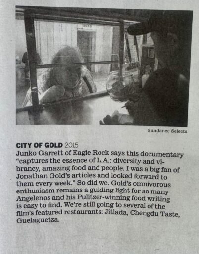 LA Times Film Article – My Opinion Was Heard! “City of Gold”