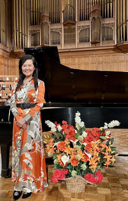 2023 Feb. My friend Paul arranged a flower bouquet to match o my dress :) シューマン・コンサートにて 友人が、私のドレスに併せてお花をアレンジしてくれました。