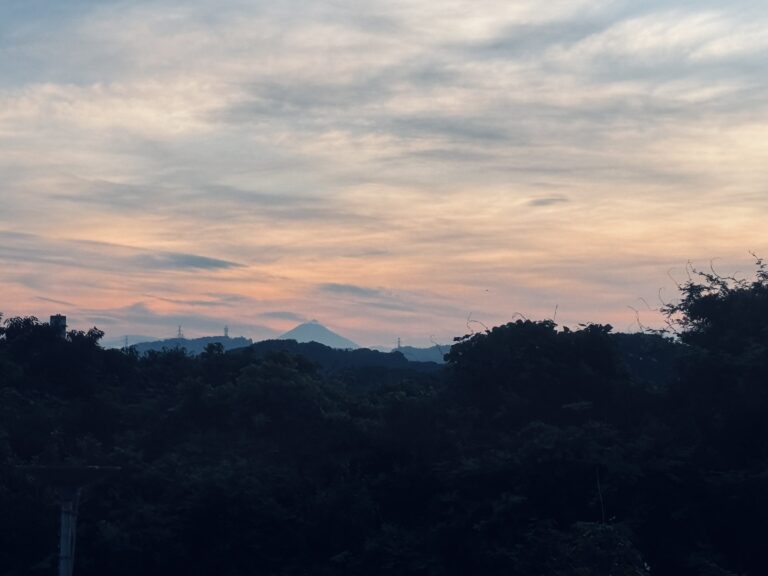 Mt. Fuji in sunset from my hotel room. 部屋の窓から、朝焼けに富士山が見えた!