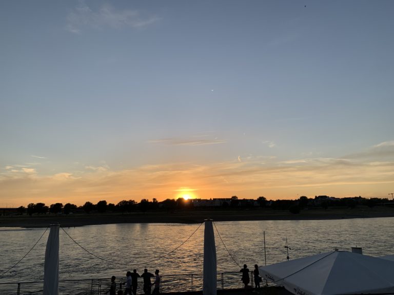 2022 Summer Trip to Germany. Sunset at Rheinuferpromenade. It may be close to where Robert Schumann threw himself into the river. But the sunset was beautiful.