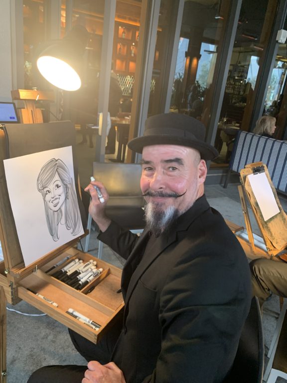 2023 Mar. LA Phil’s Party! He is a caricaturer. That is me! LA Philのパーテイで。似顔絵描きの人がいて、私も描いてもらったのです。