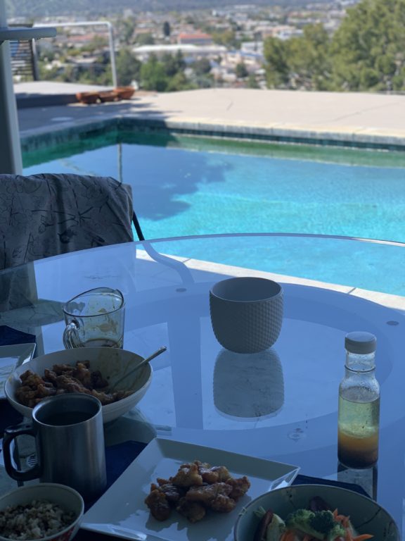 2023 Mar. We ate lunch in the patio for the first time in many weeks. So nice! 雨が多く、寒い日が続いていたLA。久し振りにパテイオでランチ。
