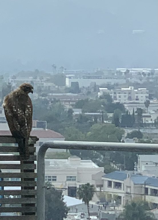 2023 Apr. A Great Visitor, Mr. Hawk! He was gorgeous. 庭に鷹の訪問。美しい鳥に見惚れる。