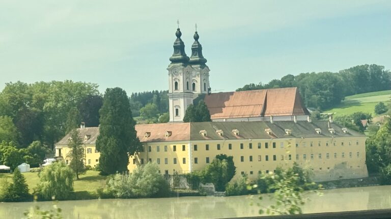 2025 June Train ride from Leipzig to Vienna. It was like a river cruise. I saw old castles and church in the distance.