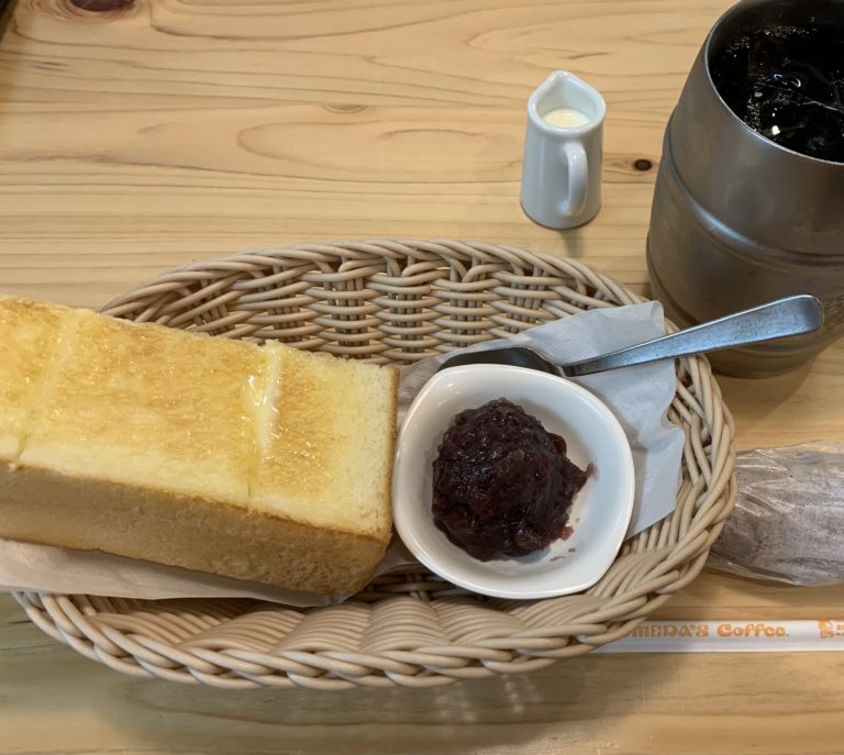 2023 July Japan Trip Famous “Red Bean Toast at Komeda” Tasty! つま恋リゾートから東京に戻る新幹線の待ち時間に、コメダのあんバタートーストを。美味でした。