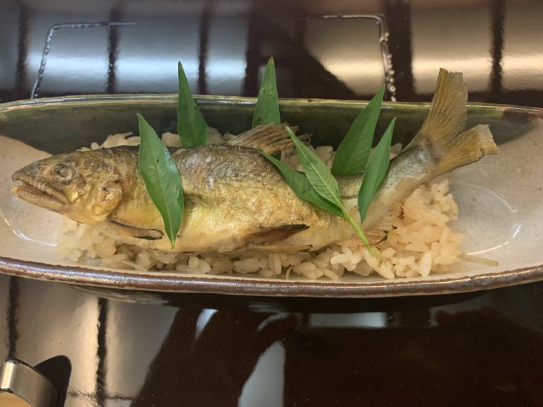 2023 July Japan Trip Ayu Fish Rice. Tasty! 鮎の季節ですね!鮎飯。美味でした。