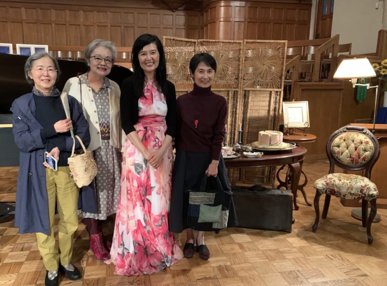 2023 Nov. “Paris in Pasadena” concert. I decorated the stage like, a Paris Salon! With Sarah, Keiko and Motoko. ”パリ イン パサデナ”のコンサートで。仲の良い友人たちが来てくれた:)