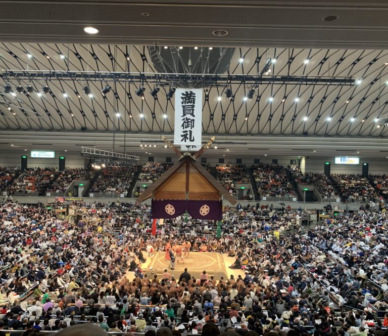 2024 Mar. Japan Trip It says “Thank you for the Full Audience” at Osaka Sumo Tournament.